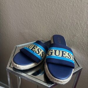 Chic GUESS slides in navy and cream. Ideal for everyday comfort. No box. Pre owned.