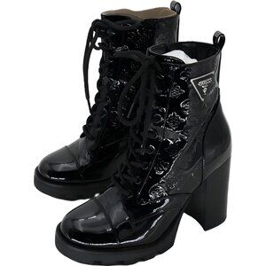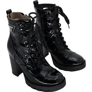 GUESS Neadyn Lace-Up Heeled Bootie Black Patent Logo Women's US 6M