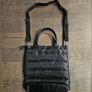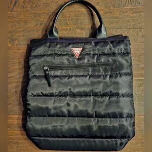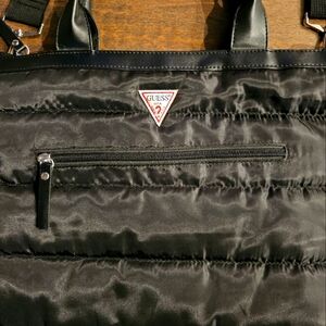 Black Guess New Purse/Crossbody Body Bag with Two Handles, a Long Adjustable Black Strap and Front Large Zipped Pocket. Guess Signature Logo on Front of Bag. Perfect with All Attire and All Seasons.