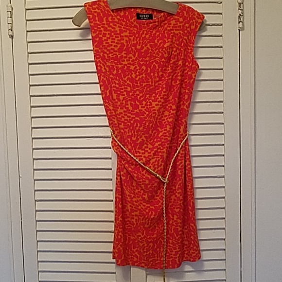 Guess Orange Dress , in great condition,with golden belt size 2