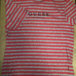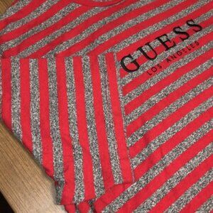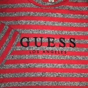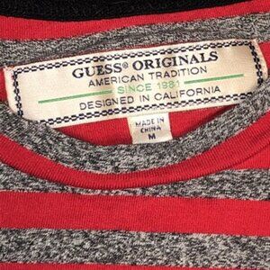 GUESS Originals T-Shirt Medium Red Gray Striped Logo Graphic Short Sleeve Mens