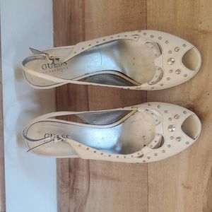 CUTE GUESS SHOES CREAM WITH METAL STUDS.