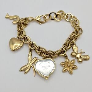GUESS Pave Rhinestone Charm Bracelet Watch Gold Tone - Needs Battery - Working