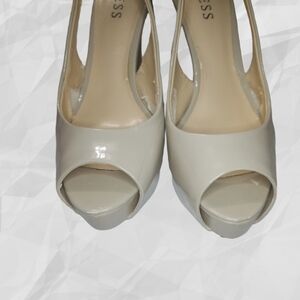 GUESS Peep Toe Heels Nude Patent 8