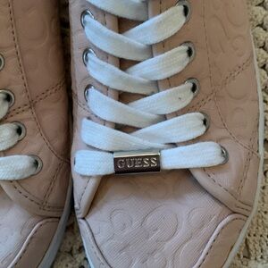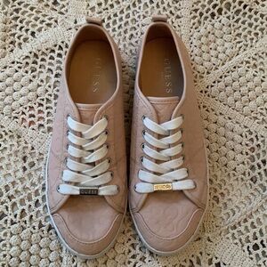 GUESS Leather Sneakers Pink with “G” print Size 7 1/2 Smoke free home No Box