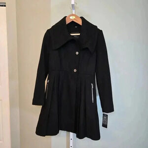 GUESS Pleated Wool Blend Flare Coat Peacoat Jacket Matrix Minimalist Preppy