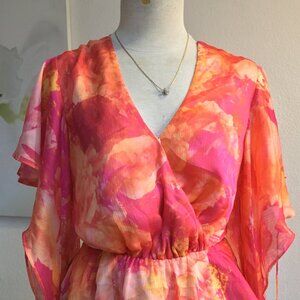 GUESS Printed Blouse Top Long Slit Sleeve Wrapped Ruched Waisted Chiffon S