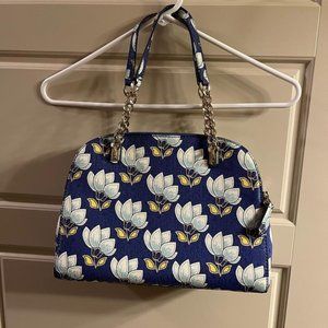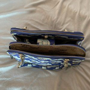 @feyko it did not come with a cross body strap. I think it could be used as one though if you had a chain strap and attached it to the outside hooks the handles are on.