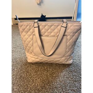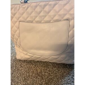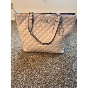 Light pink Guess bag with bag charm. Zip enclosure. Back pocket and 4 interior pockets made from 100% PU inside lining 100% polyester