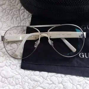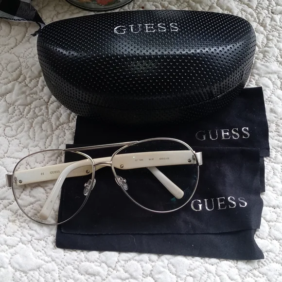 Guess rx glasses and case with 2 cleaning clothes silver hardware