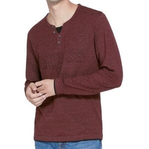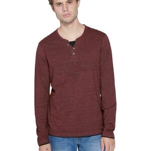 New GUESS Reese Logo Marled Henley LONG SLEEVE MEN'S SHIRT SZ XS