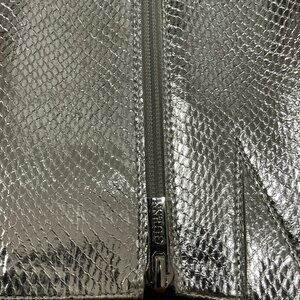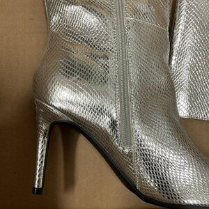 GUESS Richee Knee High Boots Silver Pointy Toe Stiletto Heel 9.5M MSRP $139