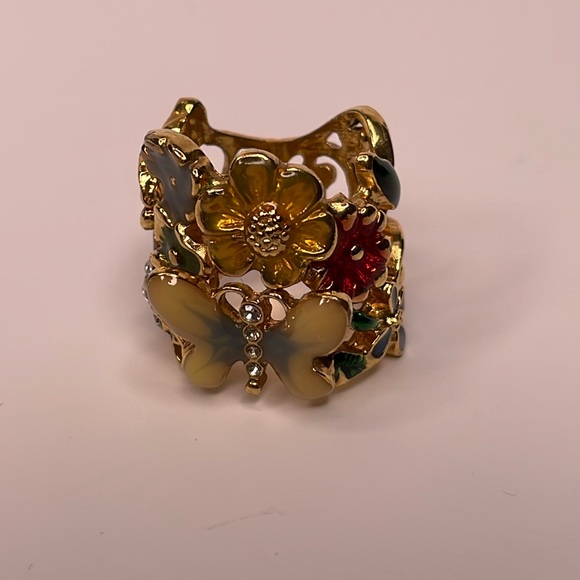 GUESS Ring Gold Tone Butterfly Flowers Enamel Ring