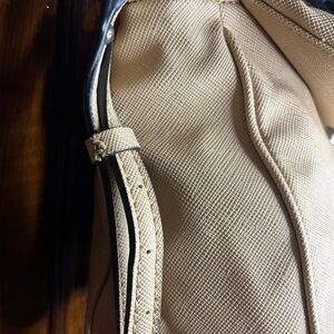 GUESS SAND SANFORD BOW BUCKLE SATCHEL HANDBAG BAG PURSE