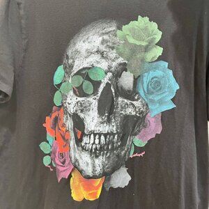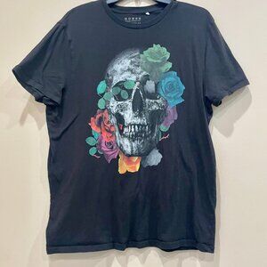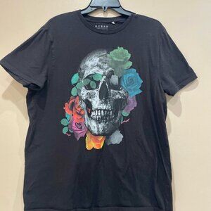 GUESS SKULL ROSES T-SHIRT BLACK EMO GOTHIC SIZE LARGE
