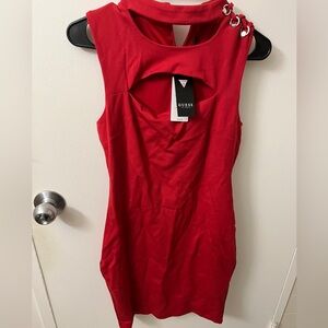 Stylish red bodycon dress with cutout details and shoulder accent. Perfect for a night out. Nice thick material. NWT! From Pet free and smoke free home.