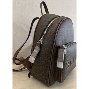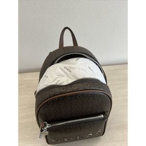 GUESS Rodney Backpack Adjustable Purse Natural Brown Logo Zipper Bag Travel New