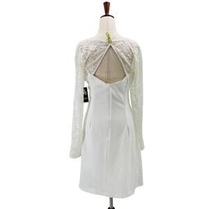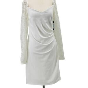 GUESS SZ 16 2x Plus white long sleeve lace scuba ruched mini dress NWT B125 flaw
