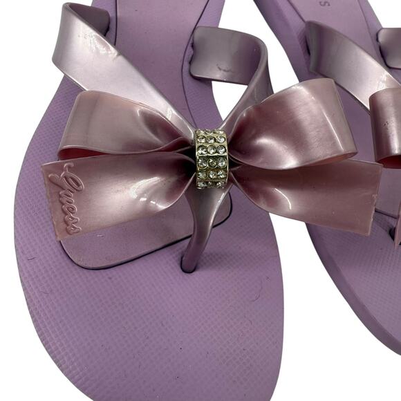 GUESS Sandals Purple Bow Rhinestone Thong Flip Flop Size 5 Womens Coquette