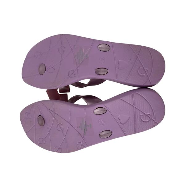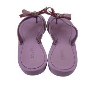 GUESS Sandals Purple Bow Rhinestone Thong Flip Flop Size 5 Women's Coquette Preppy Casual Shoe
