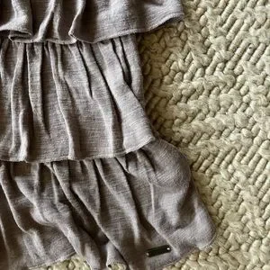 Lovely taupe shade with 3 tiers of ruffles