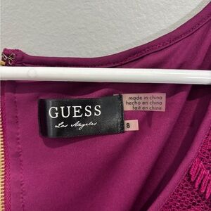 GUESS Sheath Dress Wine Scalloped Women's Size Fringe 8 Sleeveless Short. Very good preowned condition. Measurements in photos.