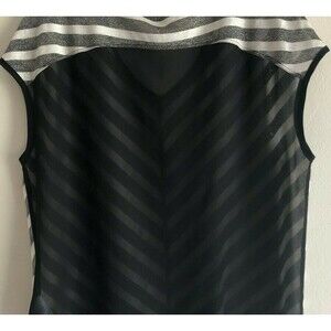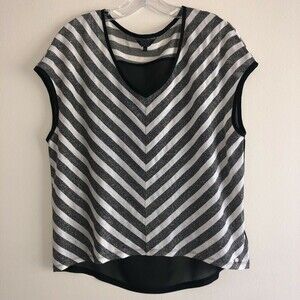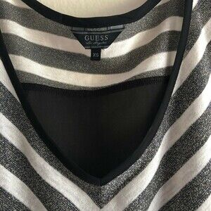 GUESS Sheer Oversized Top V Neck Chevron Stripes Black Dark Gray Gold Knitted XS