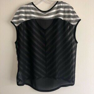 GUESS Women's Sheer Chevron Top High-Low Hem Loose Fit V Neck Blouse Size XS