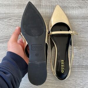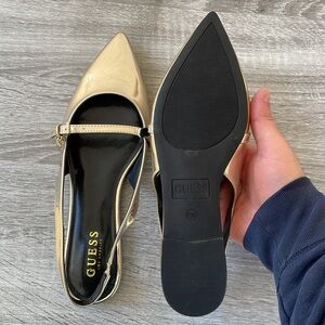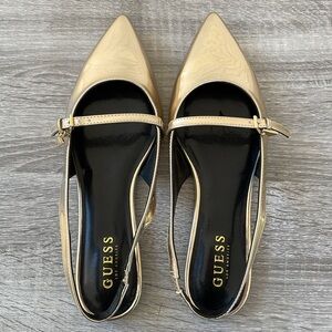 GUESS Shiny Metallic GOLD Patent Leather Pointed Toe Slingback Flats — Size 8.5