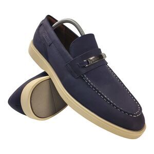 GUESS Shoes Mens Size 10.5 Blue Soft Leather Casual Loafers Slip On Preppy