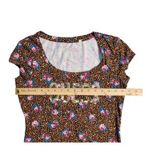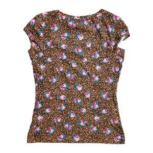 GUESS Short Sleeve Round Neck Top Women's Size Medium Leopard Floral Print