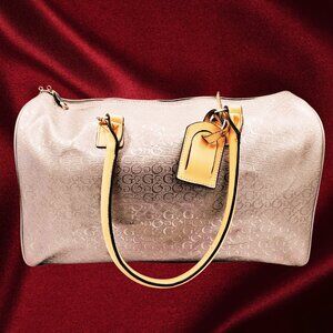 GUESS Signature Logo Duffel Satchel Bag β Beige/Tan Shoulder Strap