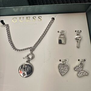 🆕GUESS Silver Interchangeable Charm Necklace Set