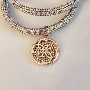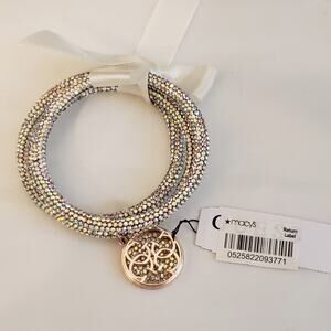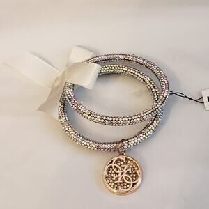 GUESS Silver & Rose Gold Tone Set of 3 Sparkle Bangles with Logo Charm