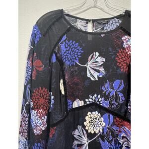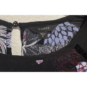 GUESS Size Medium MARINDA Floral Print Long Sleeve Blouse Sheer Boho Flare READ
