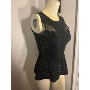 GUESS Size Small Black Sparkling Sleeveless Top Peplum Top Blouse with mesh sheer cutout areas. Has zipper on one side