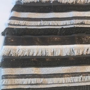ONLY WORN ONE TIME! Guess sequence and fringe black and white skirt. Perfect for a holiday party. Dress it down or up!