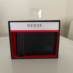 BRAND NEW CONDITION✅ NEVER USED✅ (DISCOUNT) 10% OFF ORIGINAL PRICE✅ BOX INCLUDED✅ NEW, DESIGNER, HIGH QUALITY, LEATHER, BLACK, RED, GUESS, UNISEX, MENS, WOMENS, BIFOLD WALLET