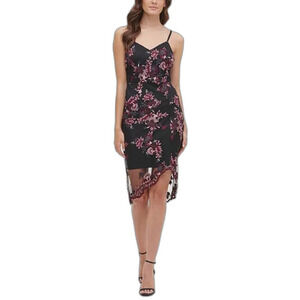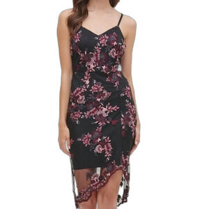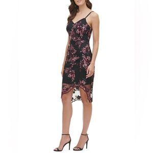 GUESS Sleeveless Floral Lace Chiffon Overlay Sheath Embroidered Mesh Dress