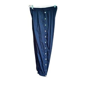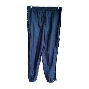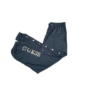 GUESS Snap Track Pants M Black Nylon Gold Snaps Tearaway Y2K Streetwear