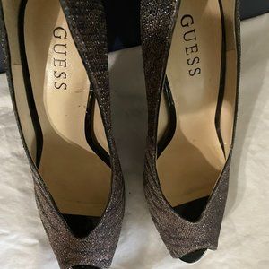 GUESS Sparkly Animal Print Stiletto Pump Glitter Heels Size 8 Peep Toe