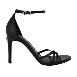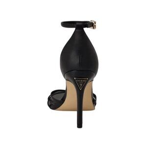 Faux-leather stiletto heels Open round toeKnotted strappy vampAdjustable ankle strap with G signature emblemStiletto heelMaterial: Synthetic.