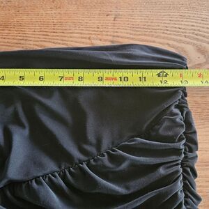 Elegant black strapless jumpsuit by GUESS in a sleek sheath silhouette. Fitted bodice with gathered at bottom straight-leg trousers—ideal for cocktail nights, date nights, or semi-formal occasions.