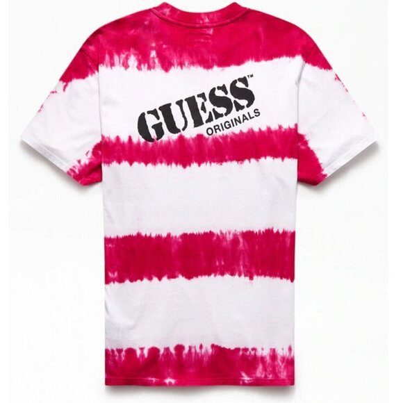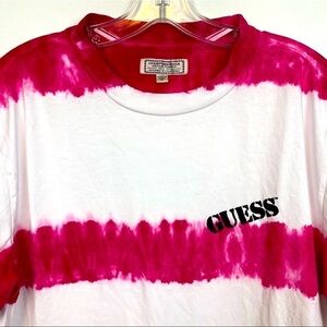 GUESS Stripe Pink & White Tie-Dyed Logo T-Shirt