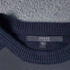 GUESS Sweater Mens L Large Black Pullover Zip Pocket Los Angeles Crewneck