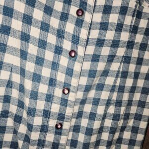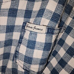 GUESS Sz 5 Vintage Blue White Checkered Snap Front Milkmaid Logo Jumper Dress