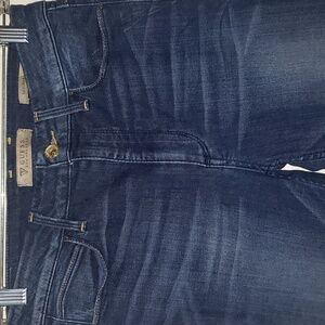 Maya Bay Wash: Medium wash denim with whiskering and intentional fading. Due to the nature of the fabric and wash, each garment has its own unique appearance.