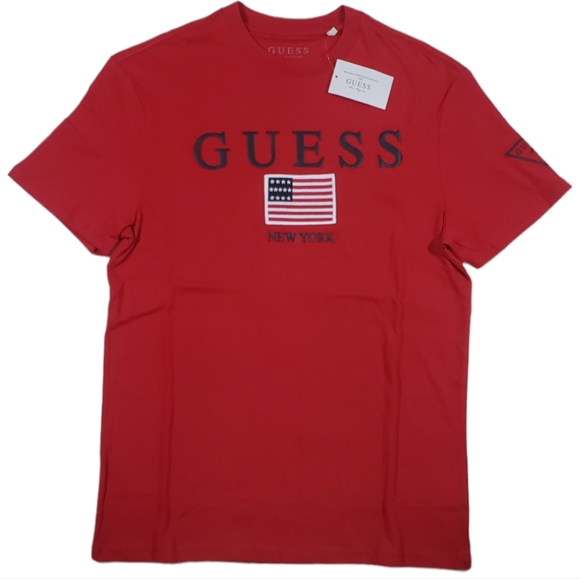 Brand New, w/tag Soft & Stretchy t-shirt material with puffy (GUESS) print & embroidery on Flag.
