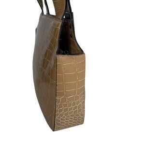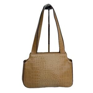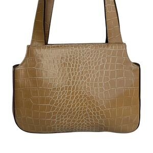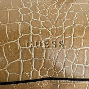 Guess Tan Leather Croc Print Double Handle Shoulder Bag
