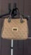 Elegant GUESS satchel with a tan and brown monogram pattern. Features sturdy handles and a stylish design.